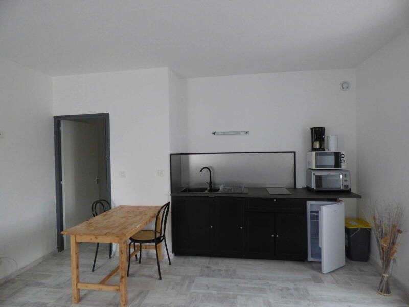 Ce gite est composé d'une pièce principal cuisine/ couchage (lit de 140*190), une salle de bain.